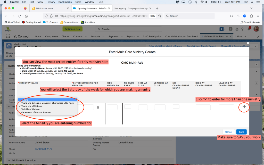 For weekly Club and Campaigners entries: The calendar date (count date) should be the Saturday ending the week of events. The reports in YL Connect reflect a ministry week of Sunday to Saturday, so that’s why we put a count date of Saturday, even if you are entering in data a day different than Saturday. You have until Mondays at noon to enter data from the previous week.